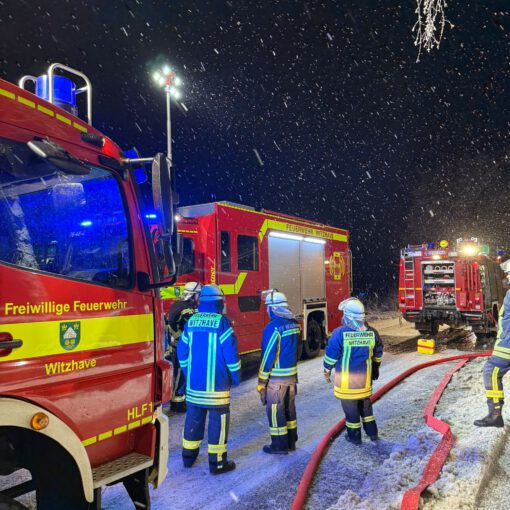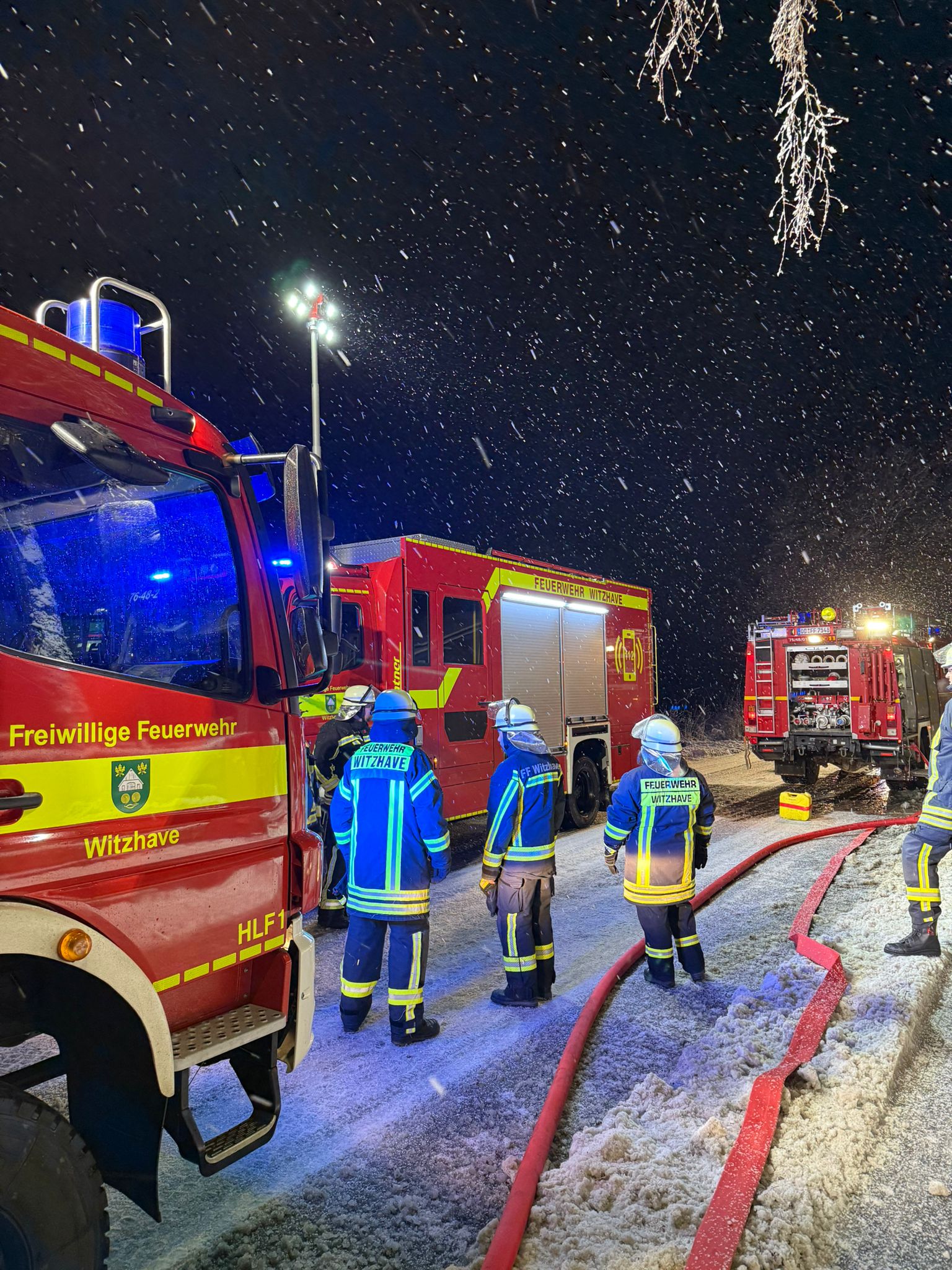 Wahrscheinlich durch Schneelast abgebrochene Baumstücke krachten aus ca. 15 Meter Höhe auf einen Weg, die Baumteile wurden zügig mit der Kettensäge zerkleinert und zur Seite geräumt. Mehrere Äste mit bis zu 3 Meter Länge und 15 cm Durchmesser verhakten sich in ca. 10 Meter Höhe. Daraufhin wurde die Drehleiter der Feuerwehr Reinbek nachgefordert, die sich um die Beseitigung der verhakten Äste kümmerte. Danke an dieser Stelle für Eure Unterstützung. Ebenso ein Dankeschön an die nehegelegene Senioren- und Pflegeeinrichtung für den bereitgestellten Kaffee. (FR)